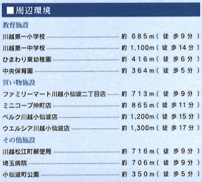 | 学区 | 小学校区:川越市立川越第一小学校 685m 中学校区:川越市立川越第一中学校 1,100m |