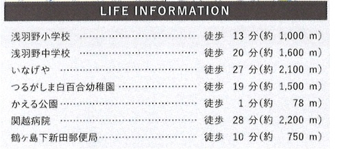 | 学区 | 小学校区:坂戸市立浅羽野小学校 1,000m 中学校区:坂戸市立浅羽野中学校 1,600m |