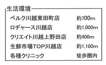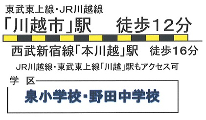 | 学区 | 小学校区:川越市立泉小学校 1,100m 中学校区:川越市立野田中学校 850m |