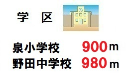 泉小学校まで約900m、野田中学校まで約980mの小・中学校に近い物件です!