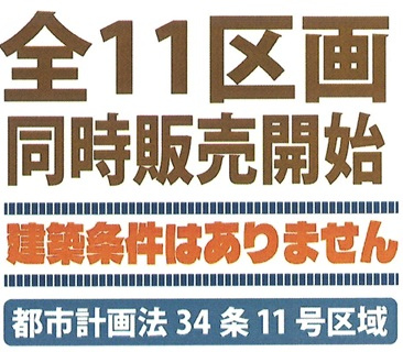 建築条件なし、調整34条11号、角地、公営水道、個別浄化槽、プロパンガス、農地転用・開発許可が必要です(売主負担)、完成宅地での引渡し