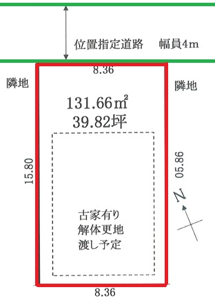 | 接道 | 北 4m(幅員) 私道 8.3m(接面) |