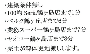 | 交通 | 東武東上線 鶴ヶ島駅まで 徒歩15分 |