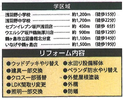 | 学区 | 小学校区:坂戸市立浅羽野小学校 1,200m 中学校区:坂戸市立浅羽野中学校 1,700m |