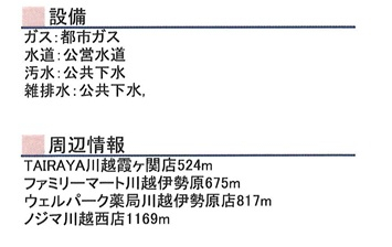 | 学区 | 小学校区:川越市立霞ヶ関北小学校 700m 中学校区:川越市立霞ヶ関東中学校 1,700m |