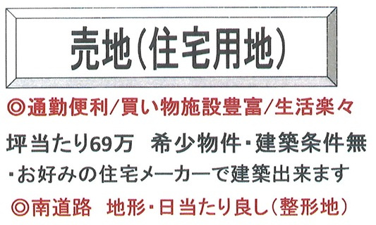建築条件なし、南道路、公営水道、公共本下水、都市ガス、現況渡し、上物有