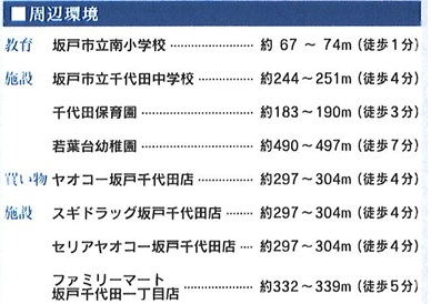坂戸南小学校まで約74m、千代田中学校まで約251mの小・中学校に近い物件です!