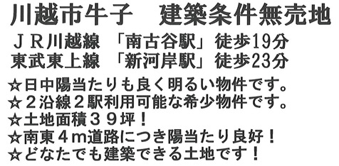 | 交通 | 川越線 南古谷駅まで 徒歩19分 東武東上線 新河岸駅まで 徒歩23分 |