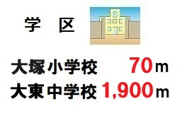 | 学区 | 小学校区:川越市立大塚小学校 70m 中学校区:川越市立大東中学校 1,900m |