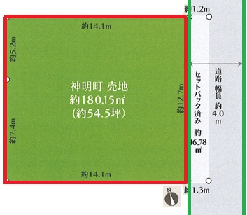 | 接道 | 東 4m(幅員) 私道 12.7m(接面) |