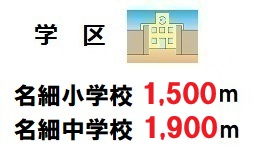 | 学区 | 小学校区:川越市立名細小学校 1,500m 中学校区:川越市立名細中学校 1,900m |
