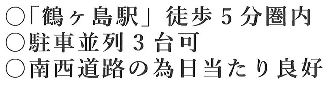 | 交通 | 東武東上線 鶴ヶ島駅まで 徒歩5分 |