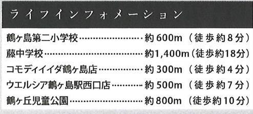 | 学区 | 小学校区:鶴ヶ島市立鶴ヶ島第二小学校 600m 中学校区:鶴ヶ島市立鶴ヶ島中学校 1,400m |