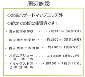 | 学区 | 小学校区:川越市立霞ヶ関南小学校 240m 中学校区:川越市立霞ヶ関西中学校 1,500m |