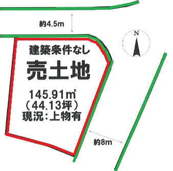 | 接道 | 北 4.5m(幅員) 公道 東 8m(幅員) 公道 |