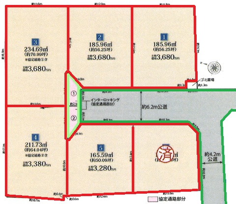 | 接道 | 南西 6.2m(幅員) 開発道路 3.1m(接面) |