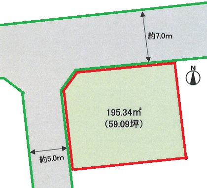 | 接道 | 北西 7m(幅員) 公道 南西 5m(幅員) 公道 |