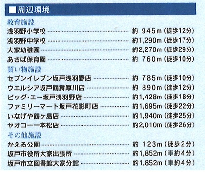 | 学区 | 小学校区:坂戸市立浅羽野小学校 945m 中学校区:坂戸市立浅羽野中学校 1,290m |