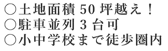 駐車場、駐車スペース3台以上、南道路、公営水道、公共本下水、都市ガス